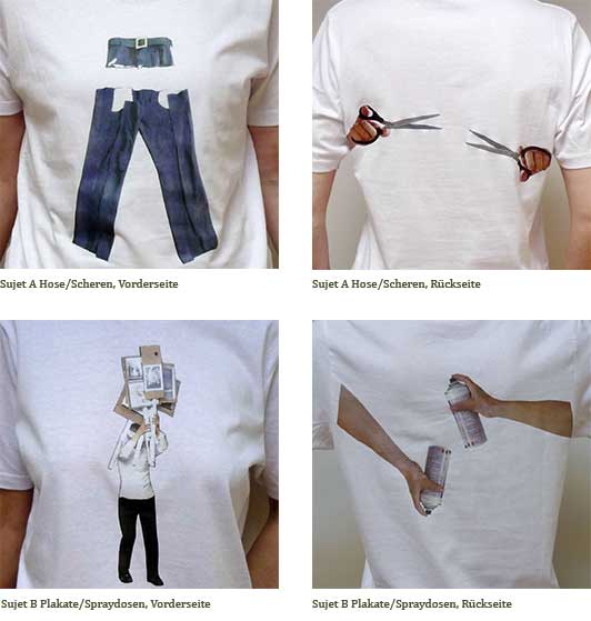 Es ist auch möglich, ein eigenes T-Shirt einzusenden und von Dorothea Rust bedrucken zu lassen, Preis pro Stück mit eigenem T-Shirt: 52 €